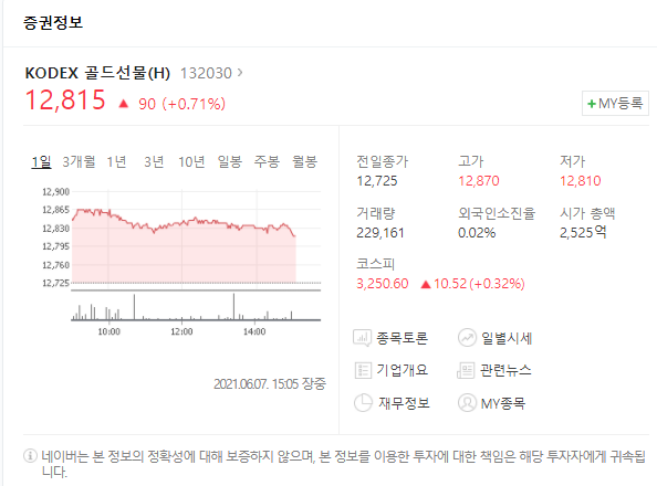 다음은 KODEX 골드 선물(H)에 대해서 알아보겠습니다.
