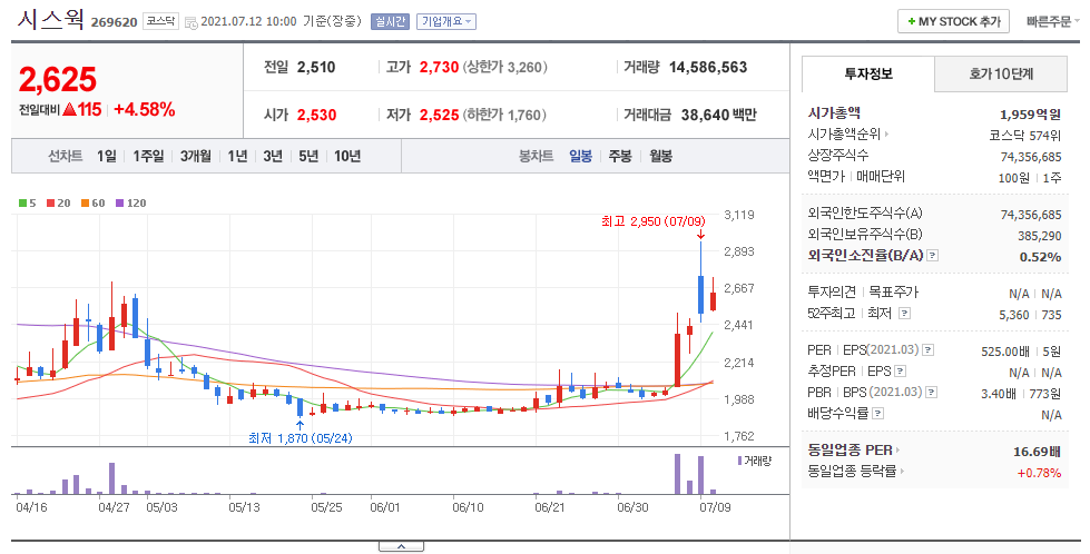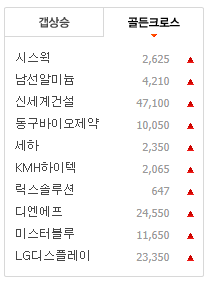 한마디로 골든크로스는 주가 상승의 신호라고 하는데요. 그러면 골든크로스에 있는 기업들에 대해서 알아보겠습니다. 먼저 시스웍입니다.