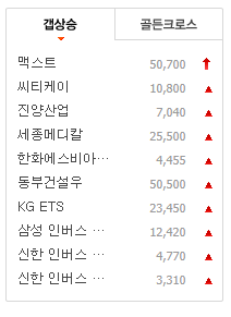 오늘도 어제에 이어서 네이버금융의 국내증시에 있는 갭상승 종목들에 대해서 알아보고 포스팅해보겠습니다. 지금 시간 기준으로 네이버금융 국내증시에 있는 갭상승 종목은 아래와 같습니다.