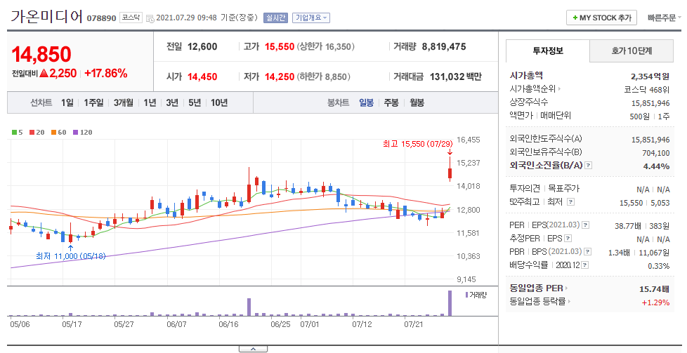 그러면 가온미디어가 급등한 이유를 찾아보겠습니다.