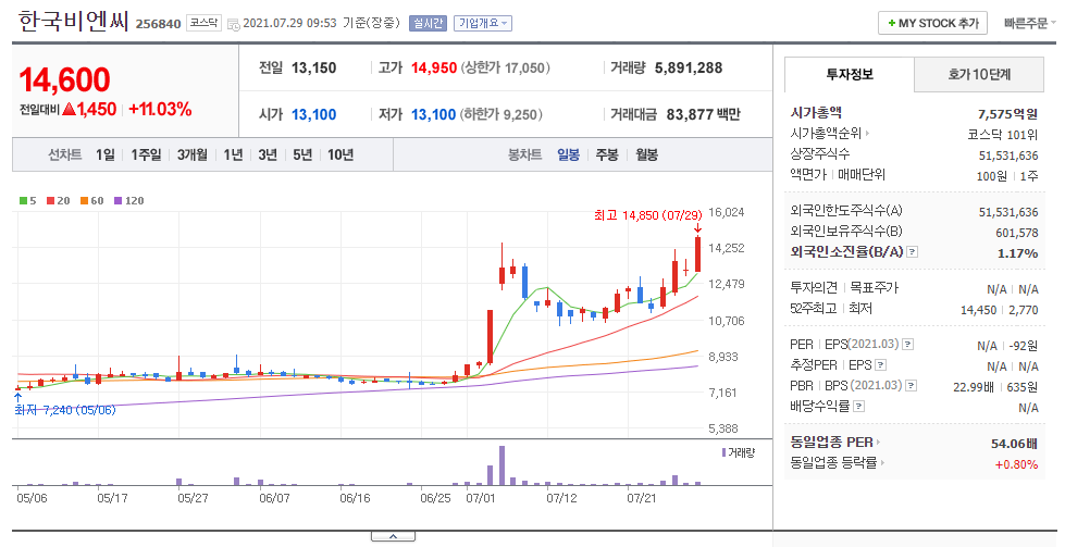그러면 한국비엔씨가 인기검색종목에 올라온 이유를 찾아보겠습니다.