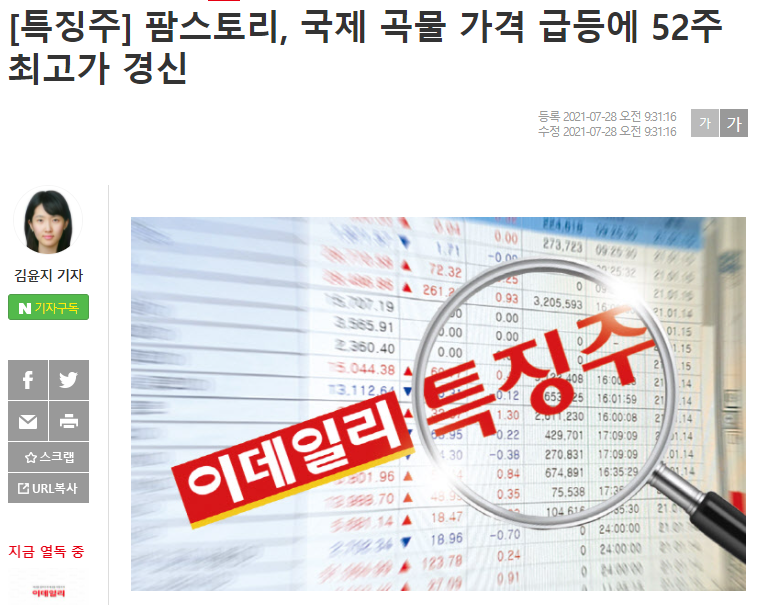 그러면 팜스토리가 인기검색종목에 떠있는 이유를 찾아보겠습니다.