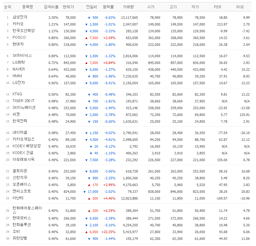 안녕하세요. 자기계발 블로거입니다. 오늘은 흐릿하니 비가 올것 같은 일요일이네요. 덕분에 폭염은 덜한것 같아서 다행이에요. 그래도 건강 잘 챙기시고 즐거운 일요일 보내시길 바랍니다. 오늘도 어제에 이어서 네이버금융의 국내증시에서 인기검색종목을 보고 포스팅을 해보겠습니다.