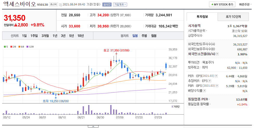 네이버금융 국내증시 갭상승 종목 : 엑세스바이오