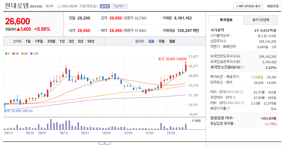 지금 시간 기준으로 인기 검색 종목은 위와 같은데요. 어떻게 보면 항상 있는 종목이 늘 있는것처럼 보이기도 합니다. 그러면 오늘은 많이 들어보지 못한 종목들 위주로 찾아서 포스팅해보겠습니다. 그러면 우선 현대로템에 대해서 알아볼께요.