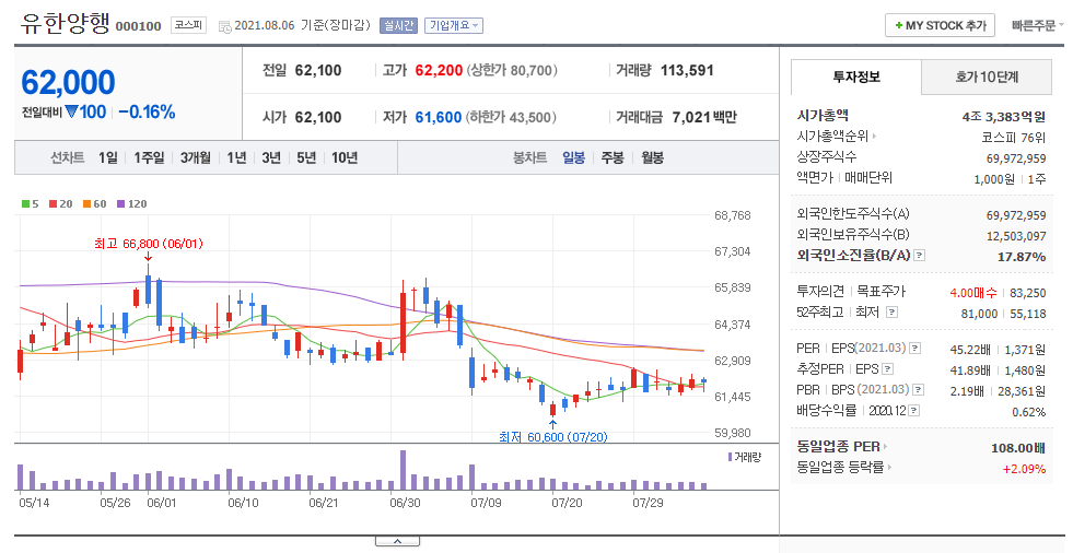 네이버금융 국내증시 인기검색종목 : 유한양행
