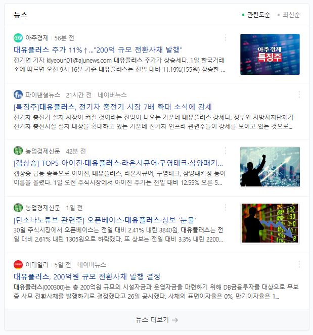 그러면 대유플러스가 갭상승한 이유를 관련뉴스를 찾아서 알아보겠습니다.
