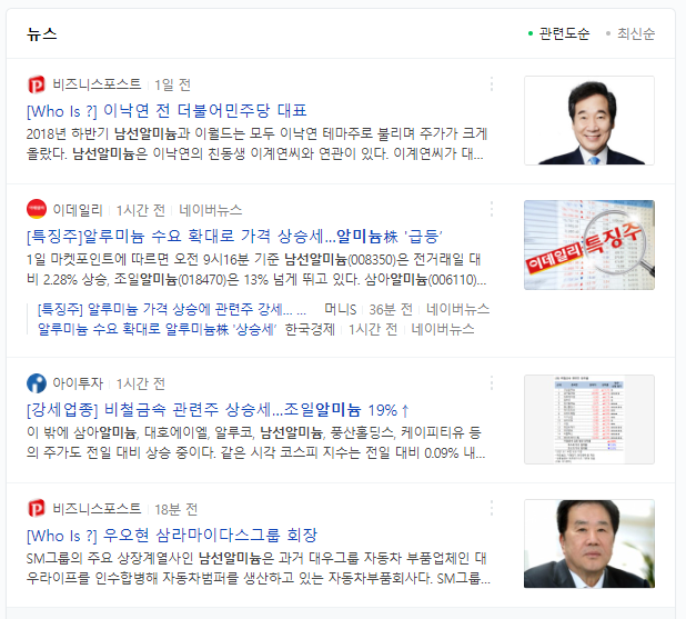 그러면 남선알미늄이 갭상승한 이유를 찾아보겠습니다.