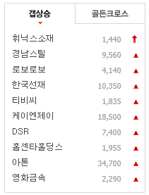 그러면 오늘도 어제에 이어서 주식 관련 포스팅을 해보겠습니다. 위의 이미지는 지금 시간 기준 네이버금융 국내증시의 갭상승 종목입니다. 휘닉스소재, 경남스틸, 로보로보, 한국선재, 티비씨, 케이앤제이, DSR, 홈센타홀딩스, 아톤, 영화금속이 나오네요. 이중에서 지금까지 포스팅안한 종목을 찾아서 하나하나 갭상승 이유를 찾아보겠습니다. 그럼 우선 휘닉스소재부터 알아볼께요.