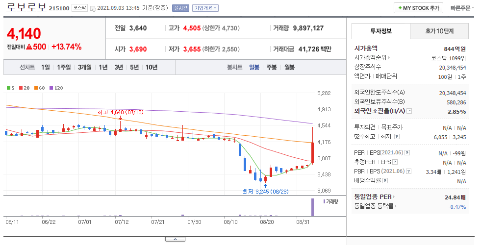 그러면 로보로보가 갭상승한 이유를 관련 뉴스를 찾아서 알아보겠습니다. 아래와 같은 뉴스들이 나오네요. 뉴스를 살펴보니 로보로보의 주요 제품은 교육용로봇, 로봇용 학습소프트웨어 관련 교재 등 교육에 사용되는 로봇 및 부수제품을 연구개발, 제조, 판매하는 업체인데요. 올해 2분기 영업손실이 전년 동기 대비해서 적자가 축소되었고 매출액은 457.7% 늘었다고 합니다. 올해까지는 코로나 영향을 받을 것으로 보이지만 2023년 회복 기점을 목표로 하고 있다고 하네요.
