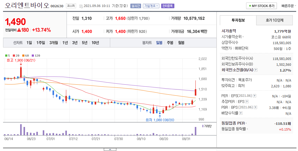 그러면 마지막으로 오리엔트바이오에 대해서 알아보겠습니다.