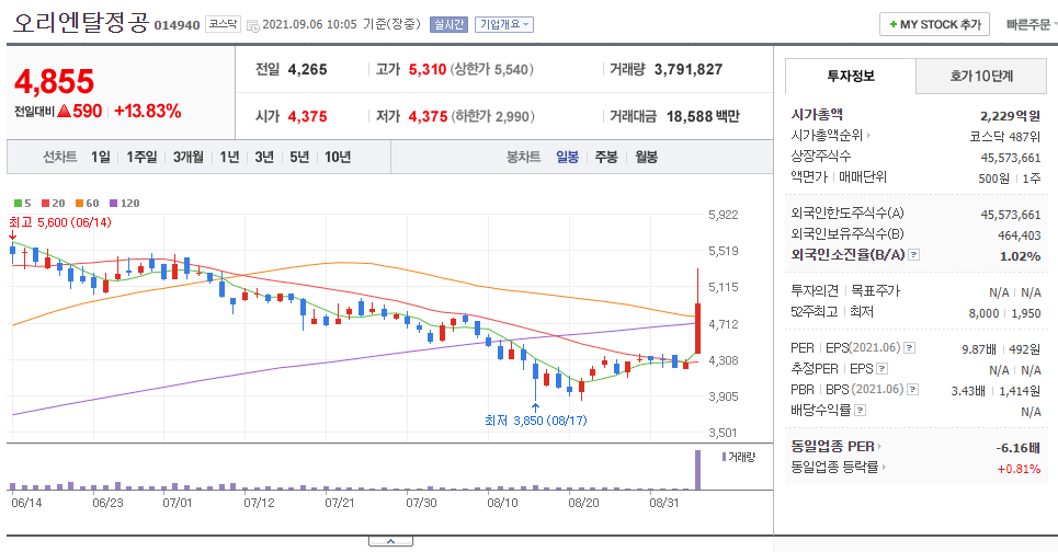 2.오리엔탈정공 갭상승 이유