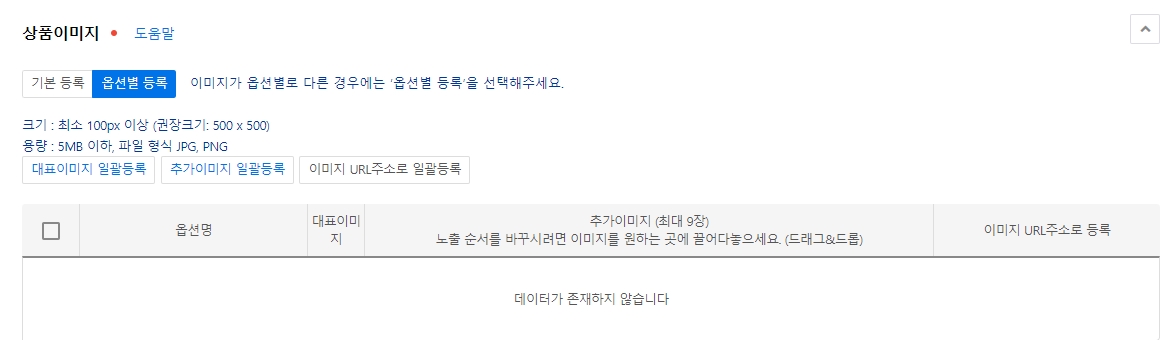 - 기본 등록 말고 옵션별 등록은 옵션별로 이미지가 다를 경우 설정해주시면 됩니다.