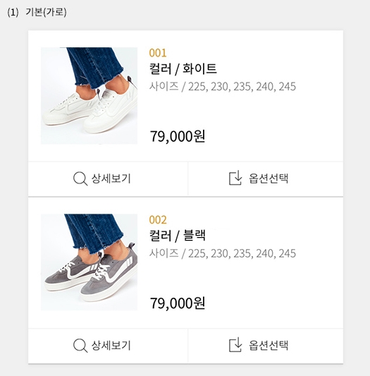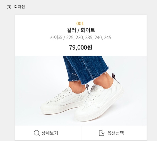 - 인터파크에는 상세페이지 입력란이 스마트 옵션과 편집기로 나뉘어 있는데, 스마트 옵션은 인터파크에서 제공하는 템플릿에 옵션과 옵션 이미지를 넣어주면 아래와 같이 옵션(+상세보기)이 나오는 방식입니다.