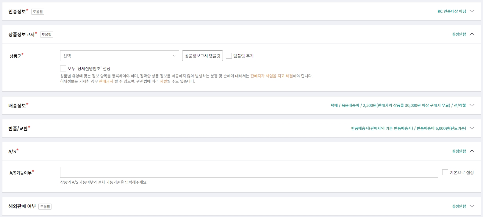 - 상품정보고시에서 정확한 상품군을 찾으셔서 내용을 입력해주세요.